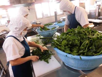 給食たんけん 「新鮮なほうれん草がたっぷり!」