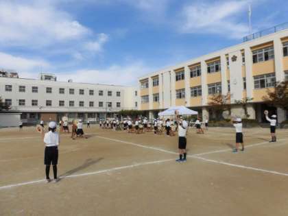 今日の1時間目、運動会の練習の様子です。きれいにそろってきていますが、最後の最後まで細かいところを修正していきます。
