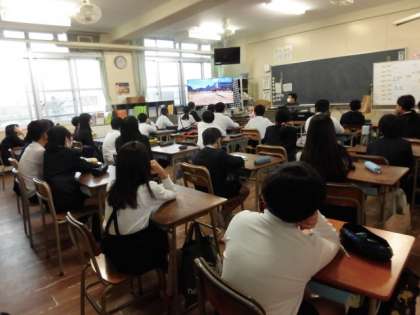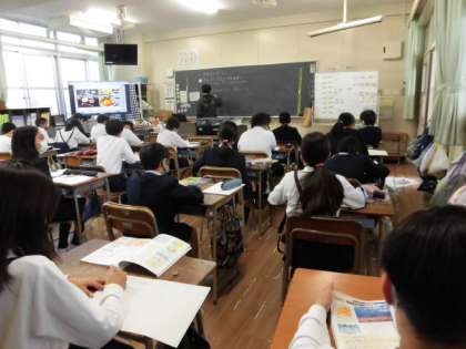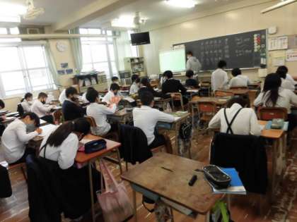 1組は運動会のソーラン節の演技を見た後、社会の授業をしています。和食から洋食に食生活が変化すると食料生産にどのような影響があるかを考えています。2組は国語のテストに向けて、漢字の復習をしています。