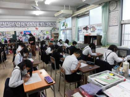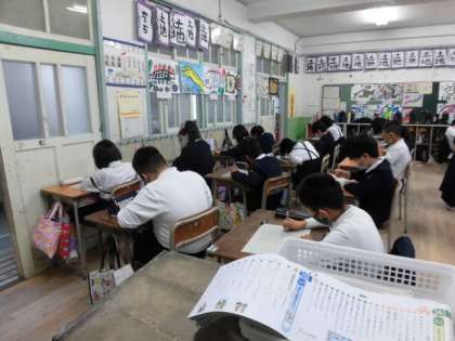 1組も2組も国語です。1組は漢字テスト、2組は国語のテストをしています。