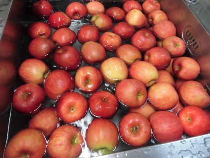 今日のりんごは「早生(わせ)ふじ」という種類で、遠く青森県から届きました。