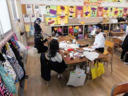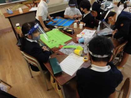 生活の授業で、いろいろなおもちゃを作っています。みんなの工夫がたくさん見られました。少し遊ばせてもらいましたが、楽しかったです!