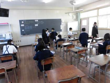 今日の1時間目は1組の研究授業です。2つの教室に分かれて、小数の足し算について学習をしています。