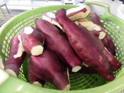 今日の豚汁には、豚肉の他にさつまいも、たまねぎ、ごぼう、にんじん、三つ葉などの具がたっぷり入っています。温まりますね。