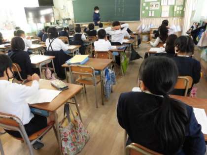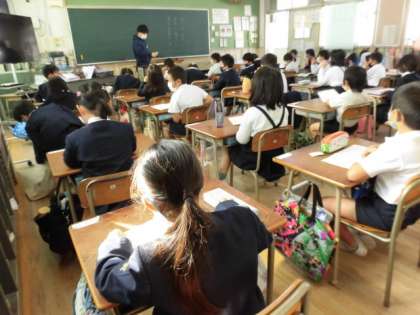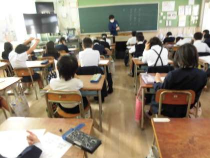 国語の授業をしています。「お」「を」の違いや「じ」「ぢ」はどのような時に使うかについて考えています。