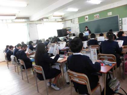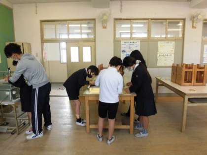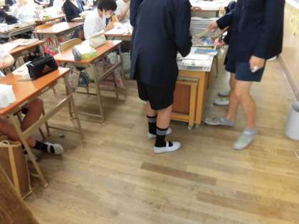 1組は図工です。テープカッターが随分と仕上がってきました。図工室では電動のこぎりで木を切る姿も見られました。2組は社会です。江戸時代の身分制度などについて学習をしています。