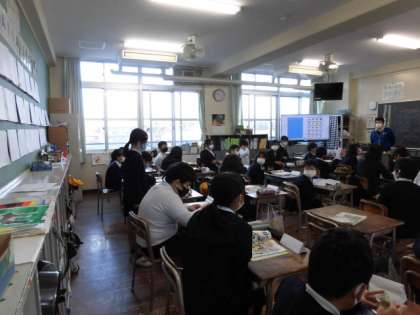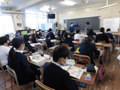 1組は英語です。「〜ができますか?」「どこに行きたいですか?」「何がしたいですか?」の3つの質問のどれかをひとりずつ答えていきます。緊張しますね!みんな上手に答えていました。2組は社会です。自動車がどのようにつくられているかについて学習をしています。