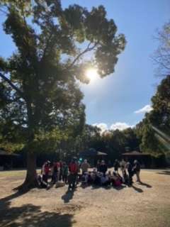 キャンプサイトに着きました。最高のキャンプ日和! 今からチェックポイントをめぐる「くずのはハイキング」がはじまります!