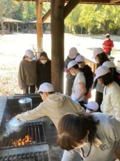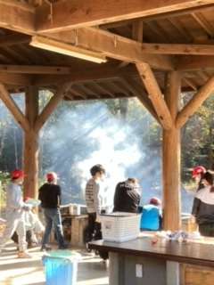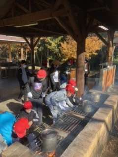 はんごうすいさんのため火おこし! 悪戦苦闘中です。