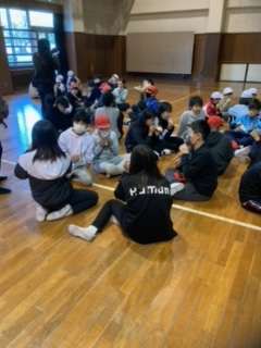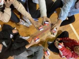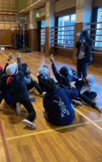 体育館で乾杯! 今から今日の活動の表彰がはじまります。