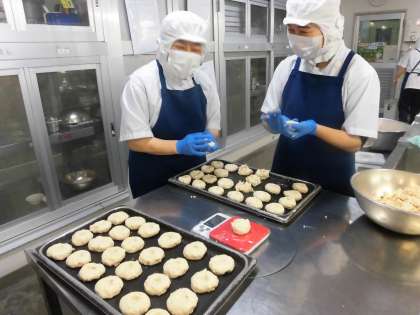 焼き物機の調子が良くなったので、今日は給食調理員さんの手作り豆腐ハンバーグができました!