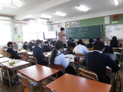 算数の授業を3つのグループに分かれてしています。いろいろな問題の組み合わせや何通りあるかについて考えています。自分たちでつくった問題も考えています。