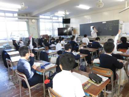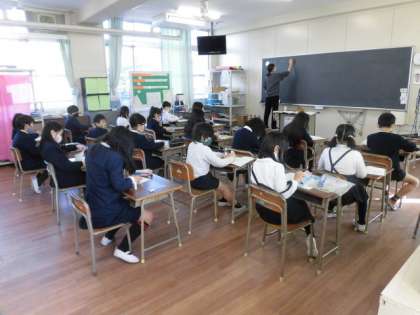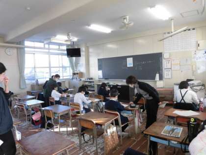 算数の授業を3つのグループに分かれてしています。分数の表し方について学習をしています。