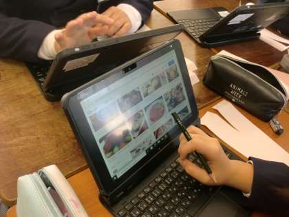 世界の食文化の特徴をタブレットで調べ、いいところを見つけて短冊に書いていきました。