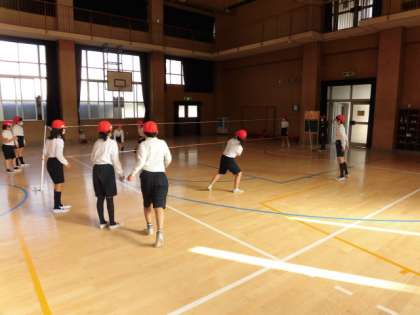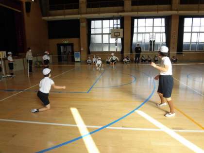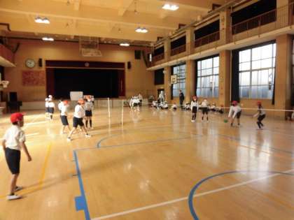 今日はフロアーボールの試合をしています。まずは1組と2組に分かれて試合をしています。