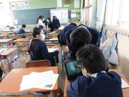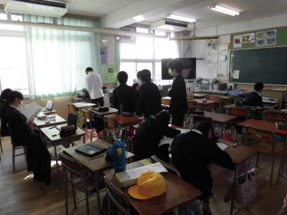1組は来週するお楽しみ会の準備をしたり、卒業文集の続きを書いたりしています。2組は社会で、江戸時代や明治時代の口頭テストをしています。