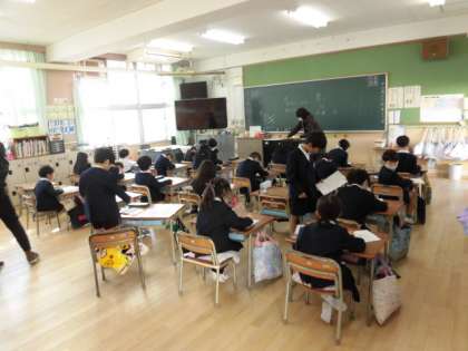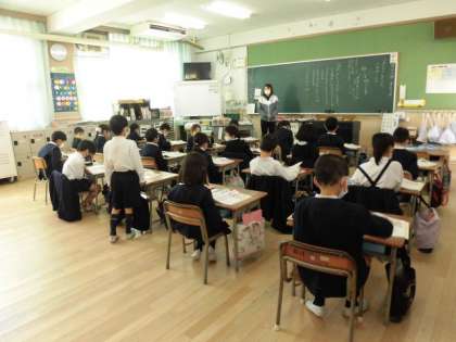 1組は点つなぎや迷路など、自分ですることを決めて、取り組んでいます。2組は道徳です。「にわのことり」の行動から、みんなとなかよくするためには、どうしたらいいかを考えています。