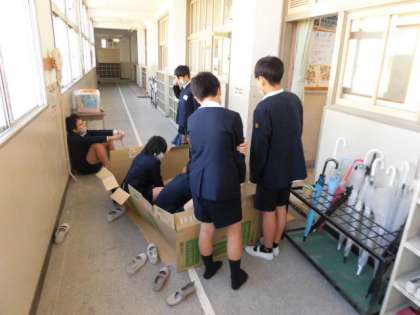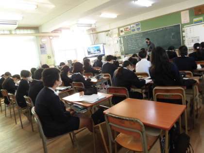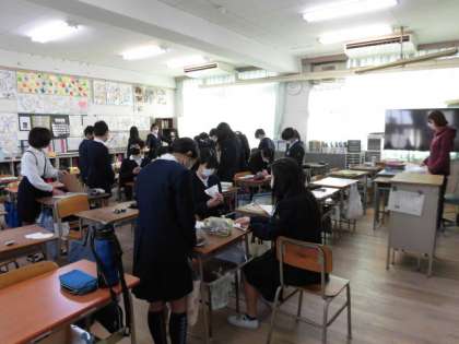 1組は理科です。火山活動や地震がどうくらしと関わっているかについて学習をしています。2組は明後日のお楽しみ会の準備をしています。