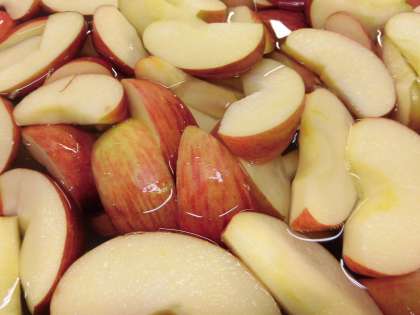 りんごは、長野県産の「サンふじ」です。給食調理員さんが、食べやすく切ってくださっています。