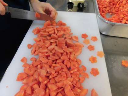 雑煮(ぞうに)は、関西で良く食べられている、白みその味つけです。濃い赤色の金時人参を花型にしてくださっているので、お正月らしさを感じますね。この金時人参は、「なにわの伝統野菜」です。