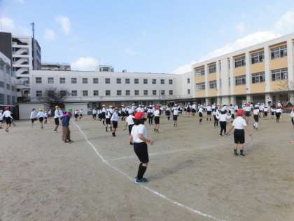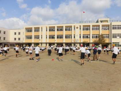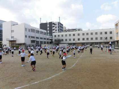 みんな、なわとびをがんばって、跳んでいます。3分跳んで、1分休憩し、1分跳びました。この短い時間でも、しっかりやるといい運動になります。