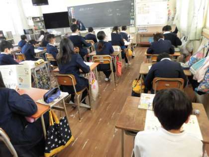 1組は理科で、食塩などのつぶが水にどのように溶けるかについて調べていきます。2組は「わたしたちのくらしと情報」という冊子を使って、自分たちの身の回りにある情報について考えています。