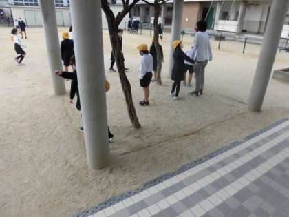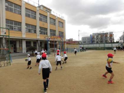 今日も寒いですが、元気にたくさんの人たちが、運動場で遊んでいます。先生も寒そうでした。