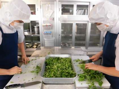 今日は、豚肉とれんこんの炒め煮にとても立派なれんこんが使われています。歯ざわりがよいですね。食物繊維もたっぷりで、おなかの掃除をしてくれます。