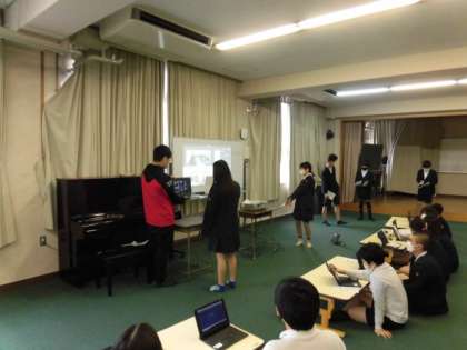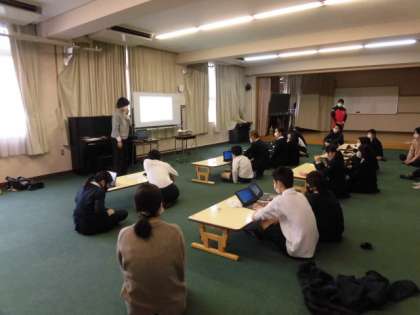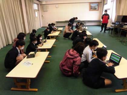 次にクイズ大会がありました。一人ずつのタブレットに問題が表示され、答えていきます。なかには難しい問題もありましたが、とても盛り上がりました!巽中学校のみなさん楽しい企画をしてくれて、ありがとうございました。巽小学校のみなさんも、中学校では一緒にがんばっていきましょうね!