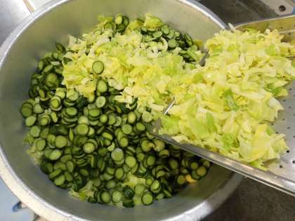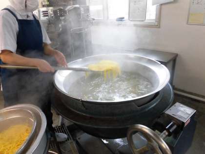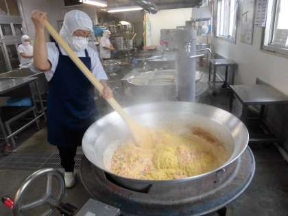 給食のスパゲッティは、小麦粉を炒めてルゥから作り生クリームでこくを出しています。