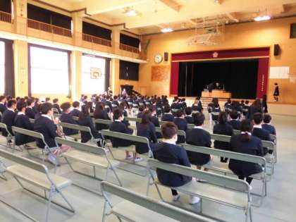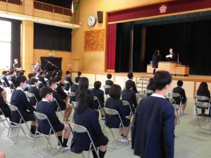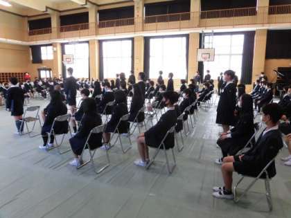 一人ずつ、将来の夢や中学校でがんばることなどを言います。歌も大きな声で歌っていました!今週末の本番もがんばってね!