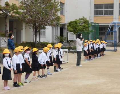 6年生の代表者から、「北巽小学校は、楽しいところです。何か困ったことがあったら話してください」等、児童の歓迎の言葉がありました。1年生の担任の先生からは、「入学してから1年生は、学校に早く慣れるように、よく頑張っています。来週から休憩時間は、運動場で遊ぶのでなかよくしてください。」等の話がありました。その後で、1年生全員で、「よろしくお願いします。」と大きな声で言うことができました。