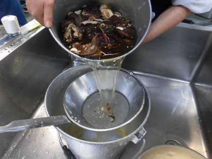 今日の煮ものは、けずりぶしのだしと、干ししいたけの戻し汁を使っています。しいたけのうまみがたっぷりです。