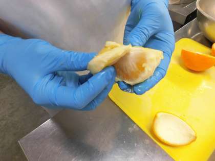 薄い皮も、房を外して、上のところを爪で少し切ると開くことができます。