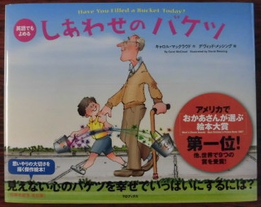 今日の児童朝会では、『しあわせのバケツ』の絵本を紹介しました。世界中の誰もが、心に「しあわせのバケツ」を持っています。バケツをしあわせいっぱいにする人は、優しい言葉を言えて、よい行いができる優しい人です。反対に、誰かをいやな気持ちにさせたり、バカにしたり、意地悪なことをしたり、悪口を言ったり、無視することは…。いじめもバケツを空っぽにします。