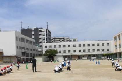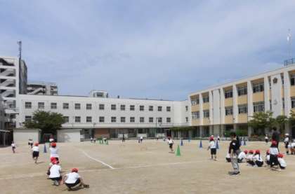 1年生の体育科の授業は、2クラス合同で、「かけっこ遊び」をしました。コーンや輪などを使って、グループでコースを考えました。自分たちの考えたコースだけでなく、他のグループのコースもかけっこをしました。走るだけでなく、回ったり、飛んだりしてとても楽しそうでした。