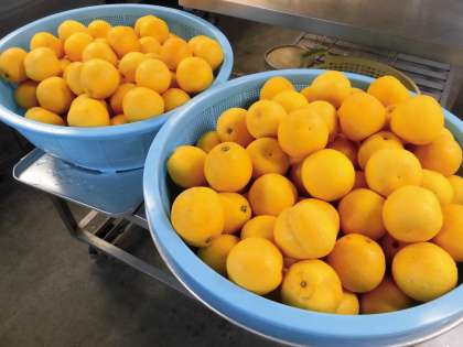 さわやかな香りで、みずみずしく、おいしいですよ。あまなつかんの時のように、切れ目から上手に皮をむいて食べましょう。