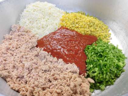 具は、ツナ、コーン、ピーマン、ピザソース、チーズです。