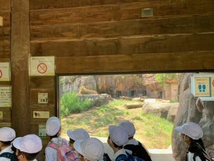いっぱい歩いたので、みんな疲れ気味です。猛禽舎の近くで一旦休憩です。
