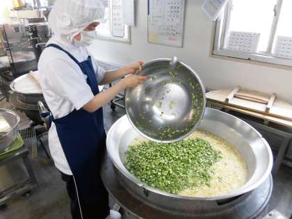沖縄県産のもずくとオクラのねばりで、少しとろりとしているすまし汁です。もずくもオクラも、おなかの調子を整えてくれる食べものです。