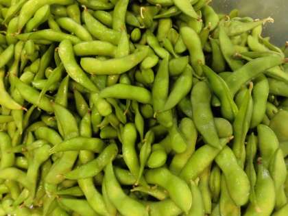 えだまめは、焼き物機で蒸して、塩をふっています。