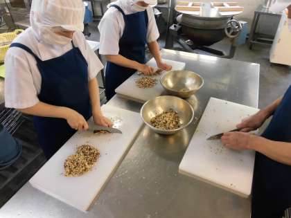 給食の「のりのつくだ煮」は、給食室で手作りしています。