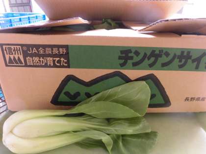 今日の甘酢あえに使っているチンゲンサイは、長野県から届きました。中華料理によく使われる野菜の一つです。