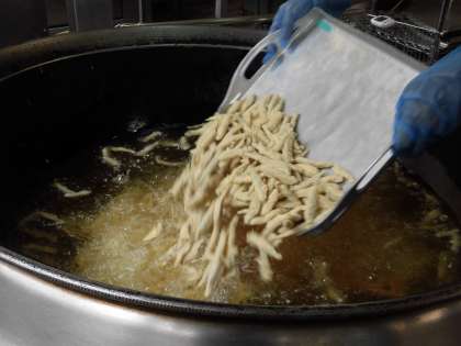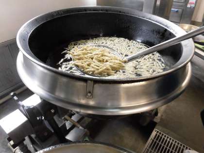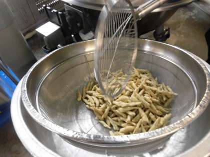 カラッと揚がったいわしてんぷらは、骨ごと食べることができて、おいしいですね。たれをかけているので、ごはんともよく合い、大人気の献立です。