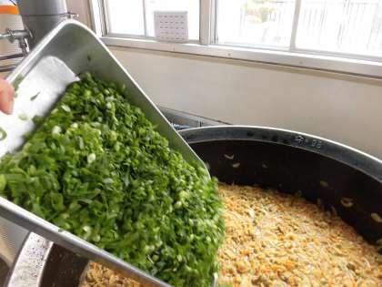 暑くなってきました。今日は、カレー味で食欲がわいてきますね。だしこんぶとけずりぶしのだしがきいて、とてもおいしいですね。