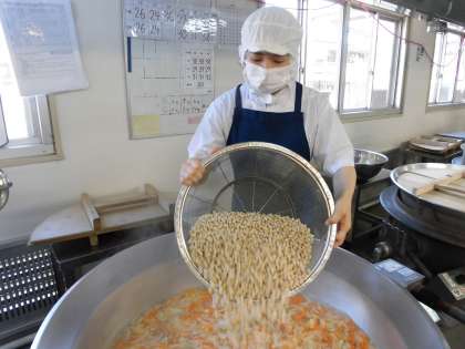 今日の「てぼ豆のスープ」は、てぼ豆のほかに、ベーコンと、野菜が3種類入っています。3種類見つけられましたか?