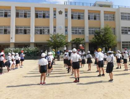 今週は、台風が接近していたり、暑さ指数が高く「運動中止」となったりしました。今日は、気持ちの良い天気になりました。プール水泳学習も今日で最後となりました。