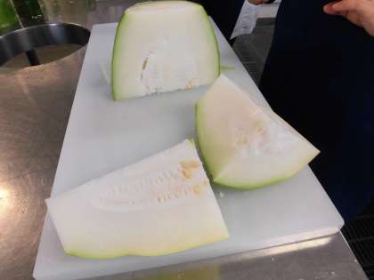 とうがんは、漢字で冬瓜と書きますが、夏が旬の野菜です。切らずにおいておくと、冬まで保存できることからこの名前がつきました。