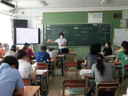 研究討議会において、大阪教育大学の柳本朋子先生と大阪市教育センターの池宮光夫先生から、指導講評をしていただきました。本校の研究を進めるにあたり、的確な指導助言をいただきました。また、研究討議会後、柳本先生による、講話『「主体的な・対話的で深い学び」に向けた算数科の授業構成—数学的な見方・考え方を働かせて—』がありました。本日の授業と関連付けてお話があり、教職員には、具体的でわかりやすくよく理解することができました。最後に、大阪教育大学の岡田和子先生からは、本日の研修会の総括をしていただきました。子どもたちの学力向上に向けての取組には、昨年度からの教職員が主体となって「みんなでつくる学校づくり」を実践していることが根底にある。そのことの大切さについて、改めて指導助言をいただくことができました。今年度の「エビデンスベースの学校改革」についても、今後研修を深めていく予定です。ご指導いただきました、3人の講師のみなさん本当にありがとうございました。