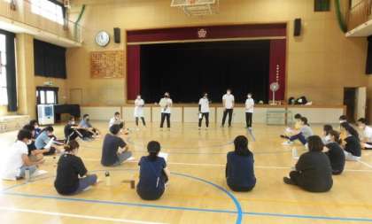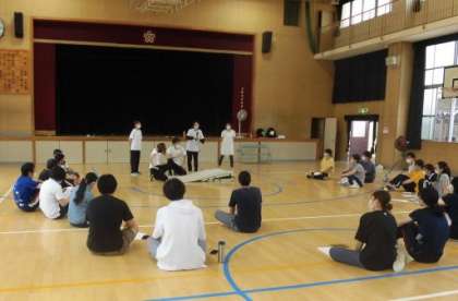 最後に、質疑応答がありました。教員は、マット運動の補助の仕方やなわとびの跳び方などについて学びました。苦手を嫌いにさせない。やろうとしていることを大切にし、子どもの頑張りをほめるようにする。短い時間でしたが、たくさんのことを学ぶことができました。2学期の学習に活かしていきます。